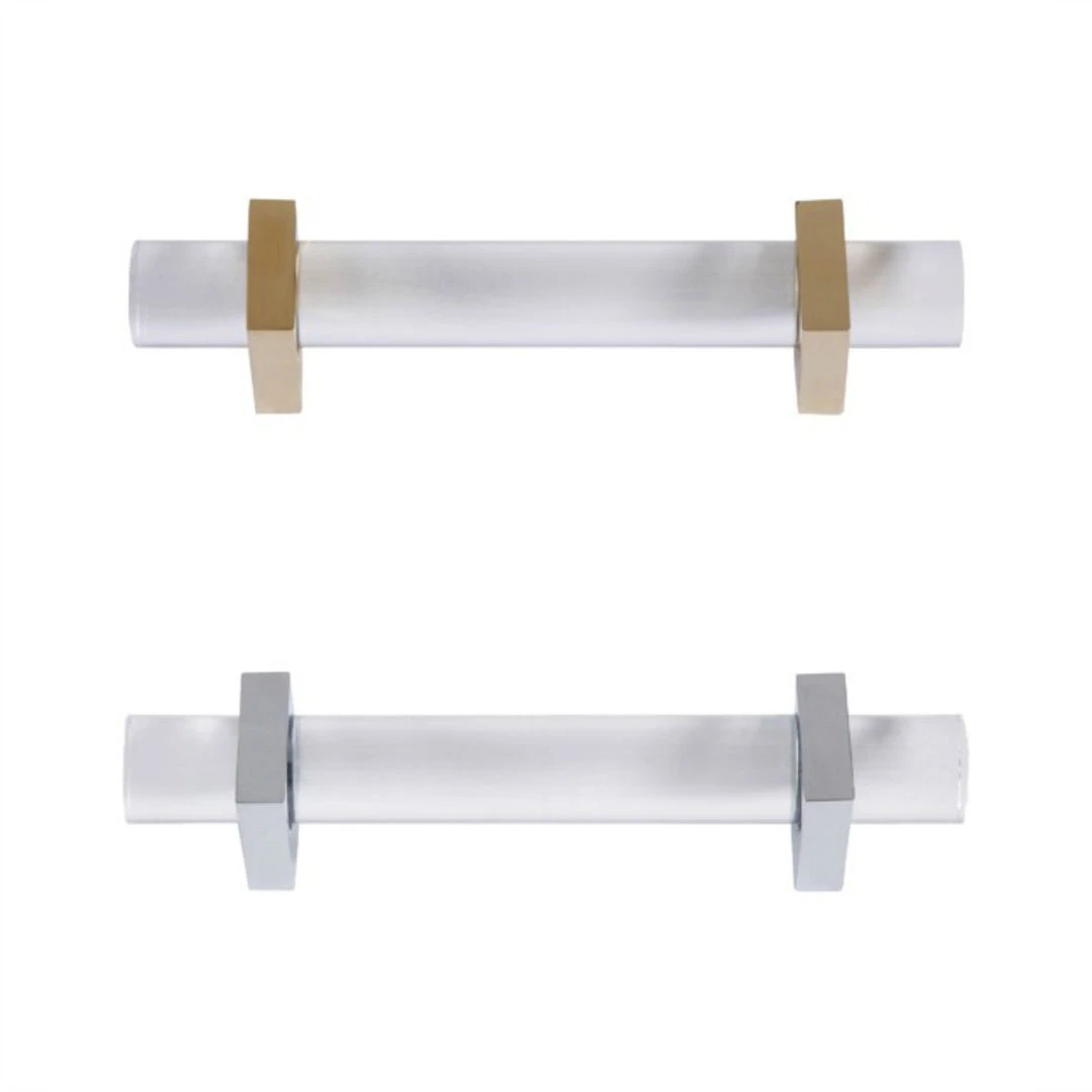 Update drawers in any room with the fabulous Monica Hardware from Worlds Away. The acrylic pulls are available in either brass or nickel metal completing the high end designer touch. Comfortable to the touch and just the right amount of design envy, the Monica pulls are an easy way to change things out for a fresh new look. The Monica is sold in pairs. Choose from either brass or nickel.