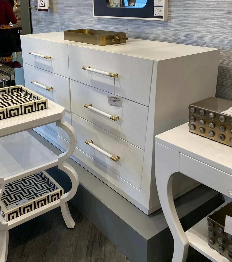 | Materials | Matte White Lacquer; Three White Lacquered Linen Drawers |